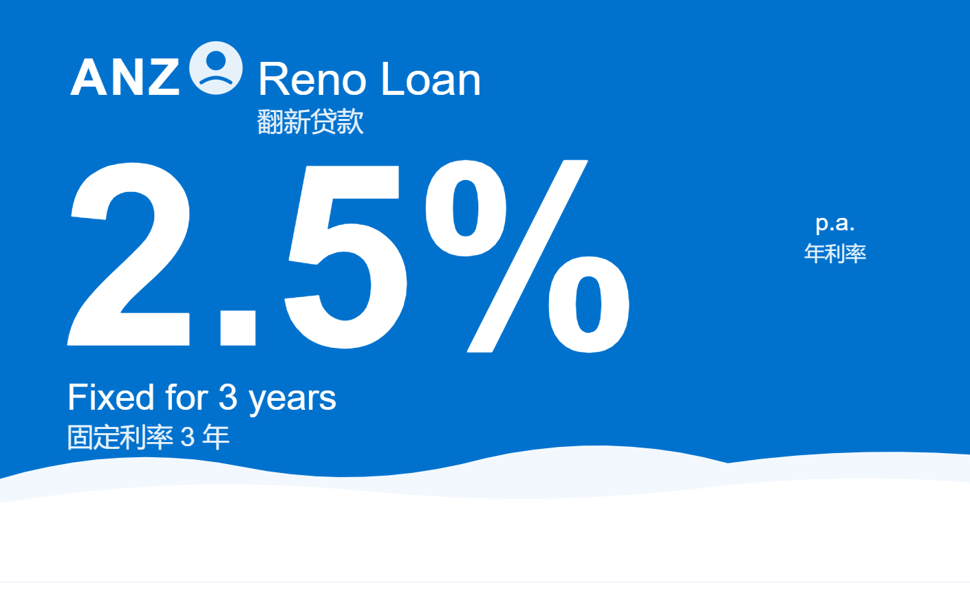 现在正是一个不错的时机。无论你是现有房贷客户,还是考虑转贷至ANZ,都有机会额外申请最高50,000纽币的装修贷款,享受3年期仅2.5%(p.a.) 的固定利率。无论是自住房翻新,还是购房后的配套装修,都可轻松实现。